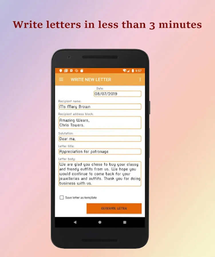 Even if you need to send letters once in a while, letterhead or not, this application can help you send letters quickly on your mobile without stress