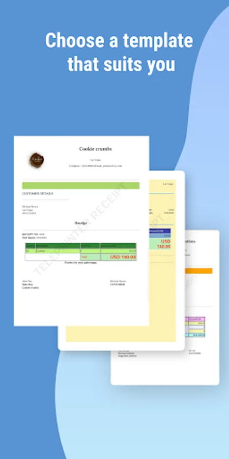 The receipt templates are beautiful and under continuous improvement. Their features include enabling you to add a logo of your choice, colourful table for item list and several currency symbols(more to be added) among others.