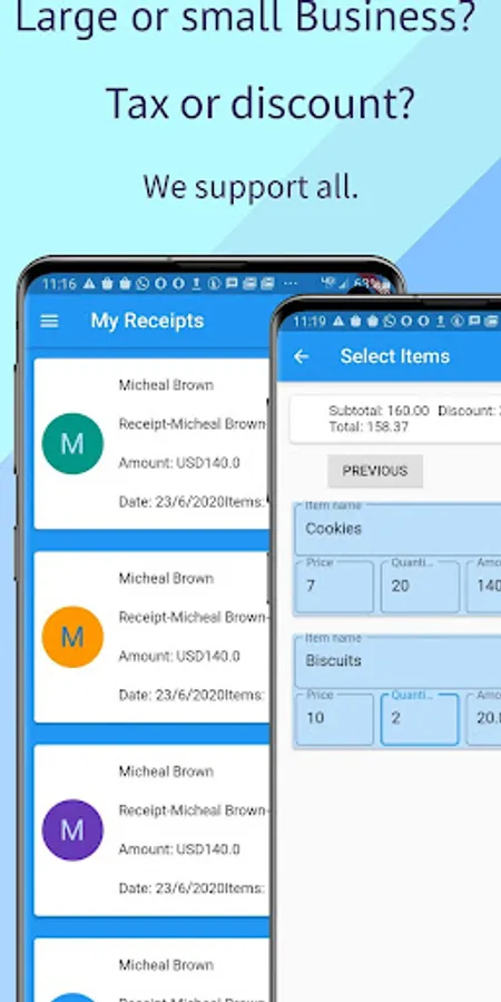 The receipts generated can be sent by an email application or your favourite application like WhatsApp, Xender etc.