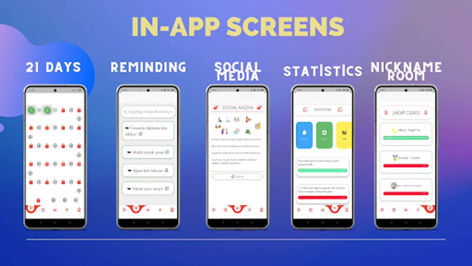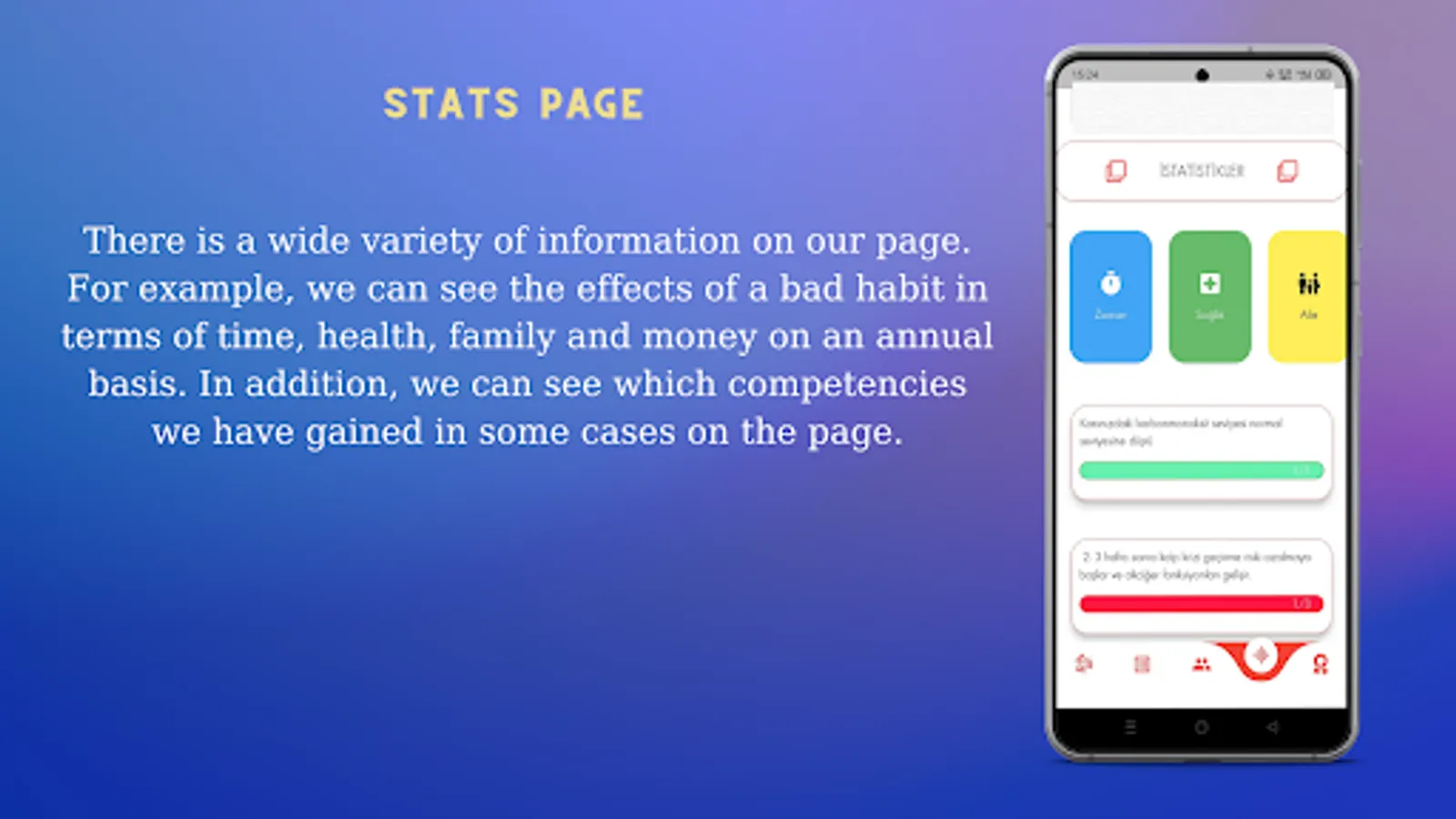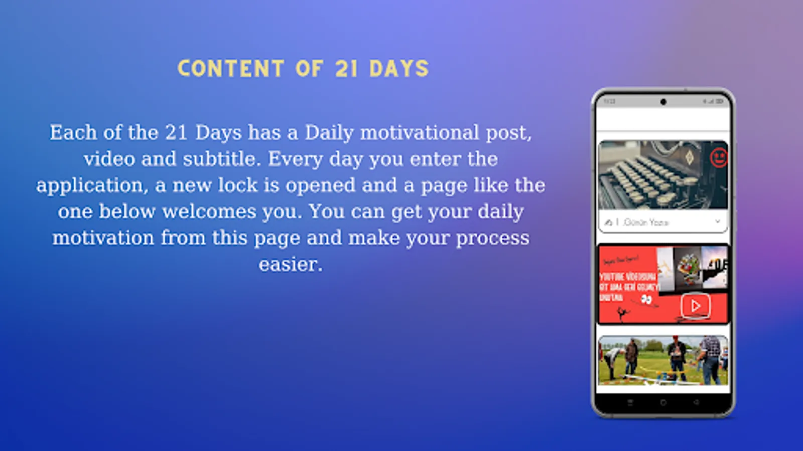 We all couldn't study from time to time or wanted to quit a bad habit, but we couldn't. Our application offers solutions for these. It provides 21 days of support and provides tools to help you in the process on other pages.