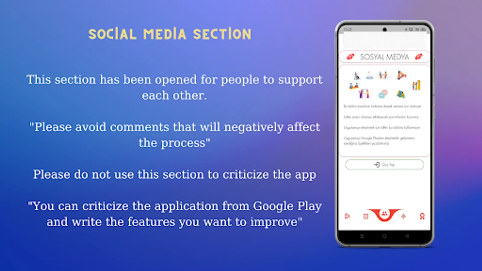 Although the social media section is ready, it will be accessible after the option to log in with Google is added so that our valued users do not become victims.