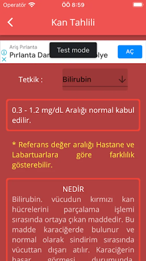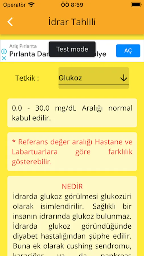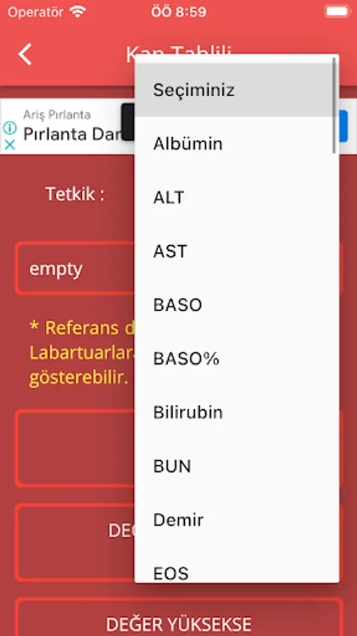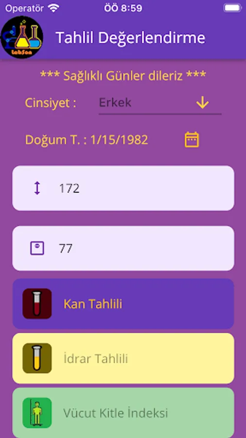 You can find out what the values in the blood and urine analysis results mean. In addition, the high or low results give you an idea of what problems may arise. You can also find out your body mass index by entering your date of birth, height and weight.