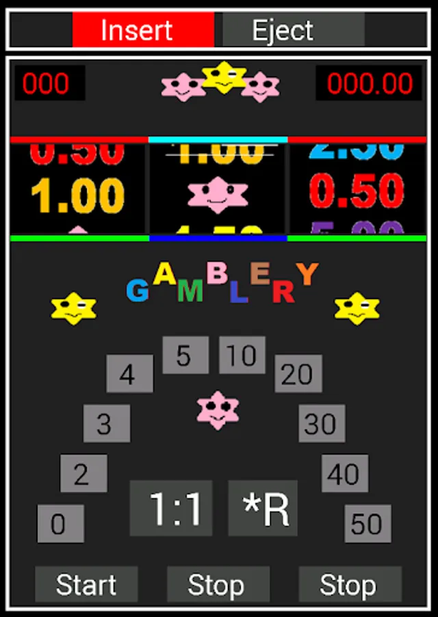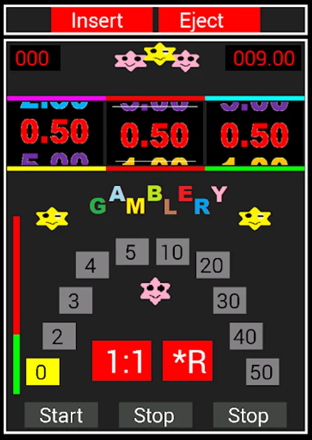 The app simulates a retro gaming device of the eighties with realistic sound and profit program. The competition program and game control with start-stop buttons and risk managers are modeled after former slot machines. The playout of special games are made accordingly depending on the contents of the internal coin store and profit history.