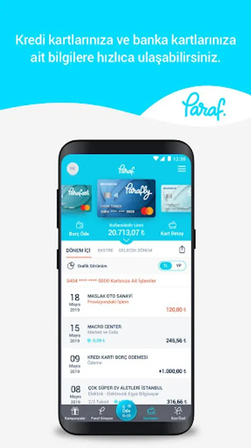 In addition, you can perform your card transactions at any time by logging in to Paraf Mobile with your TC ID number / customer number and password.