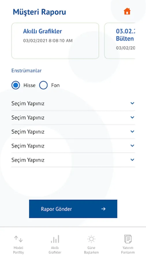 It generates reports via artificial intelligence about the shares purchased by the users or about the desired share and sends them to your e-mail.