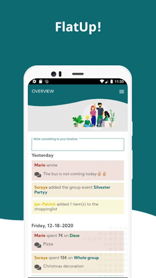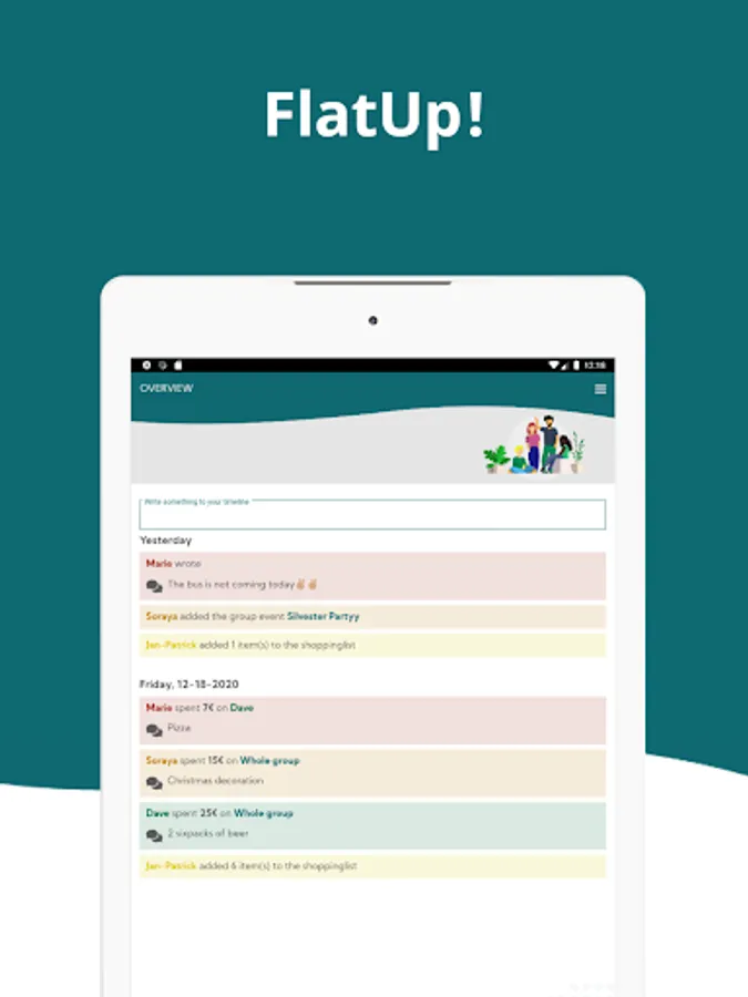 This way you never lose track and can concentrate on the finer things of living with your roommates. From anywhere – whenever. FlatUp!