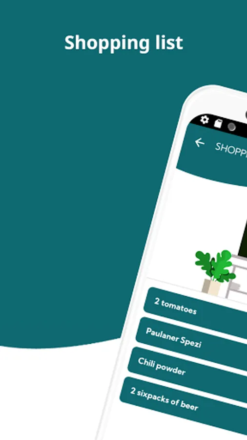 In your shared grocery list you can add items you need to buy next time you go to a grocery store.