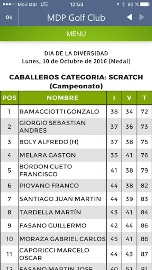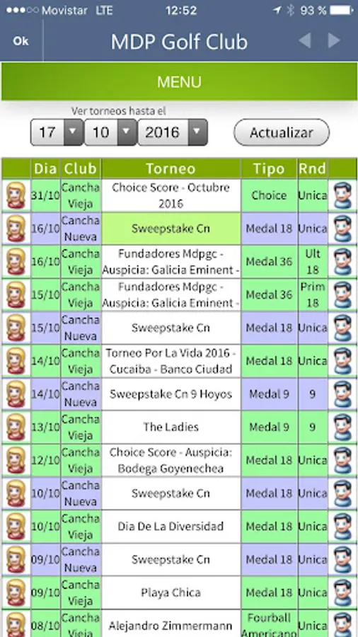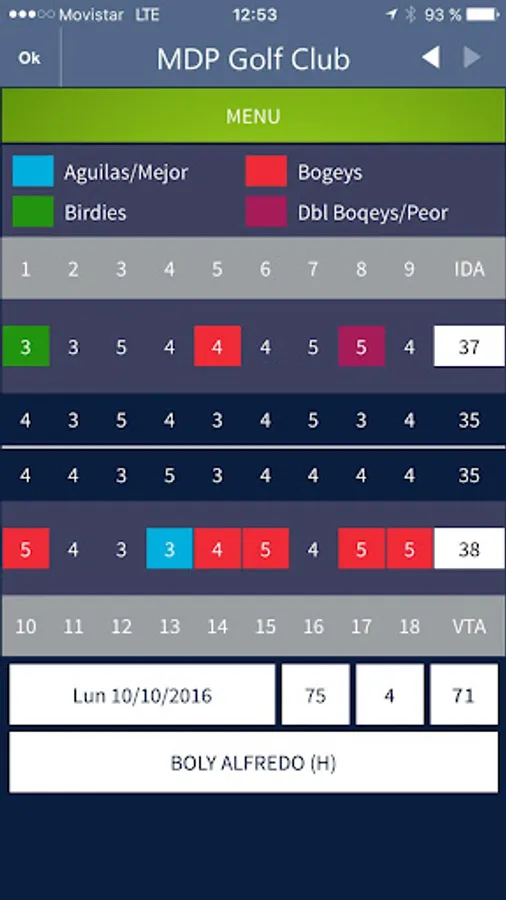 The mobile application is integrated with the Golfistics system to make reservations, see tournaments, played cards, detail of blows hole made by the current and projected handicap player and many more facilities.