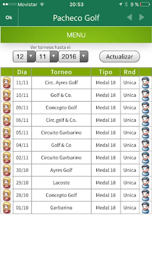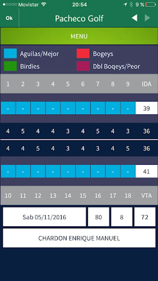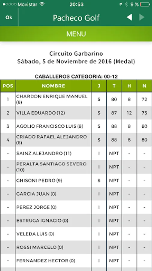 The mobile application is integrated with the Golfistics system to make reservations, see tournaments, played cards, detail of blows hole made by the current and projected handicap player and many more facilities.
