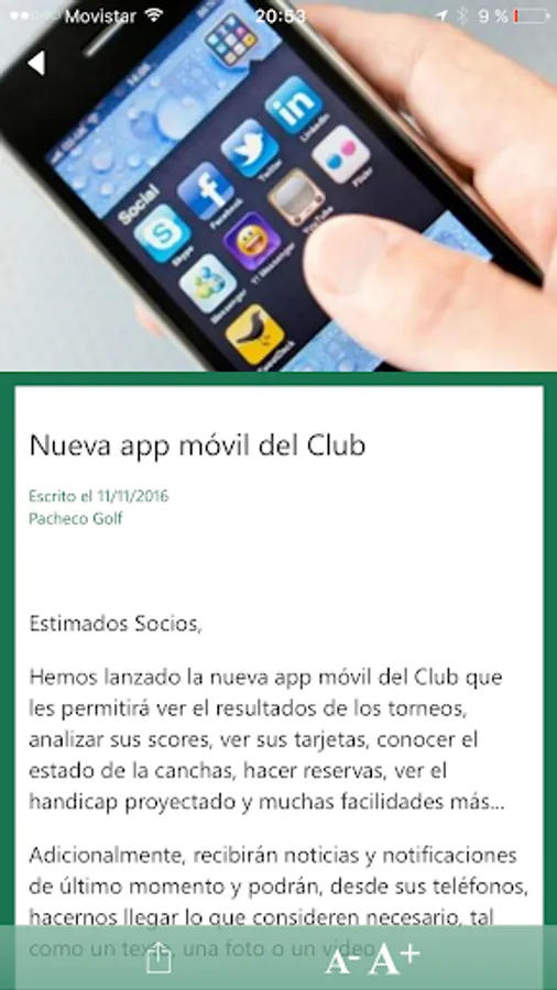 mobile application that allows partners to receive the latest news Golf Club, alerts last minute, utility phones, etc.