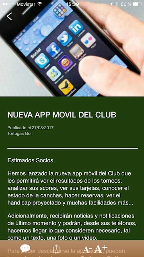 You can also use the application to interact with the golf office receiving instant messages and can send photos, videos or suggestions to management.
