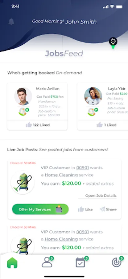 Whether you are a nail or makeup artist offering beauty services, or a freelance online service provider, you can sell your skills on our on-demand service provider marketplace. Anyone from handymen and electricians, to cleaners and maids, can create a profile and sell services on our offer services app. Get notified when a user request services like yours, send offers, get booked, and manage bookings and appointments all with Hallo helper.