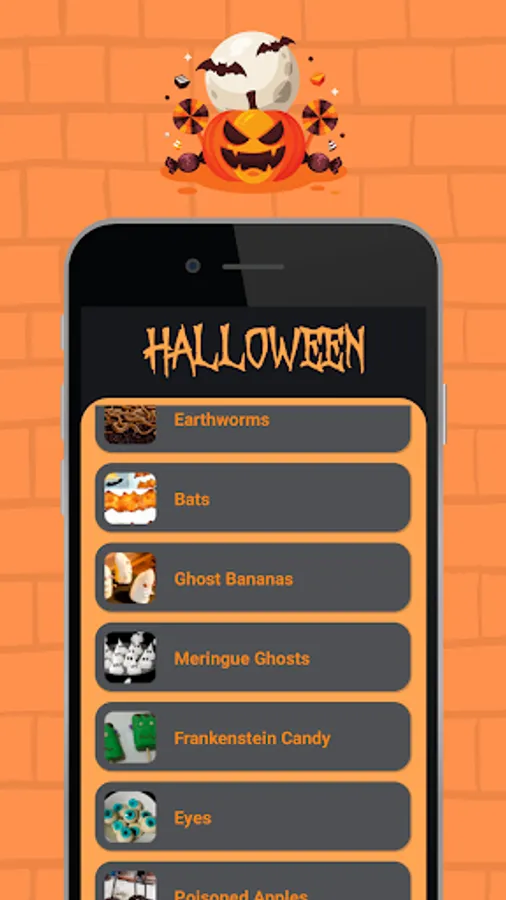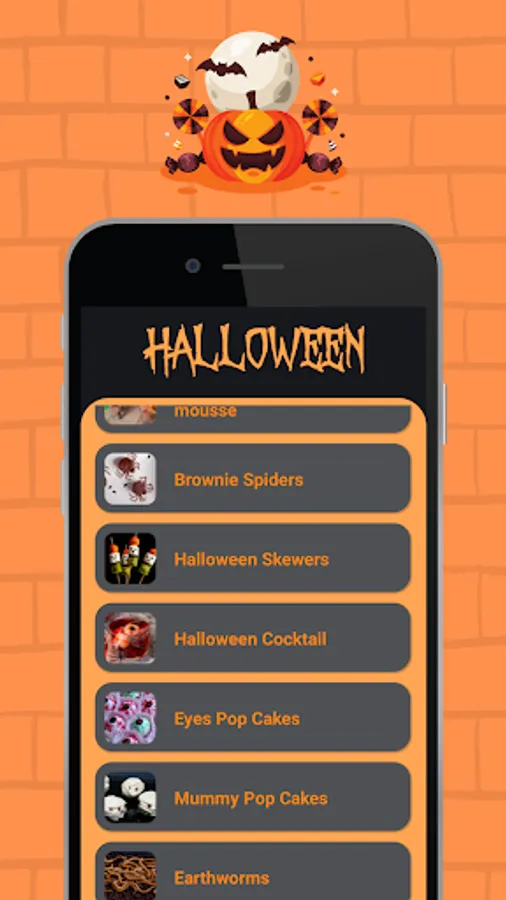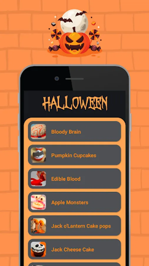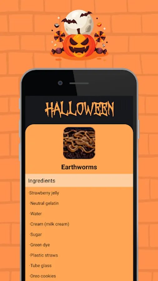 - Image of each recipe to see the result of your recipe or Halloween dessert recipes.