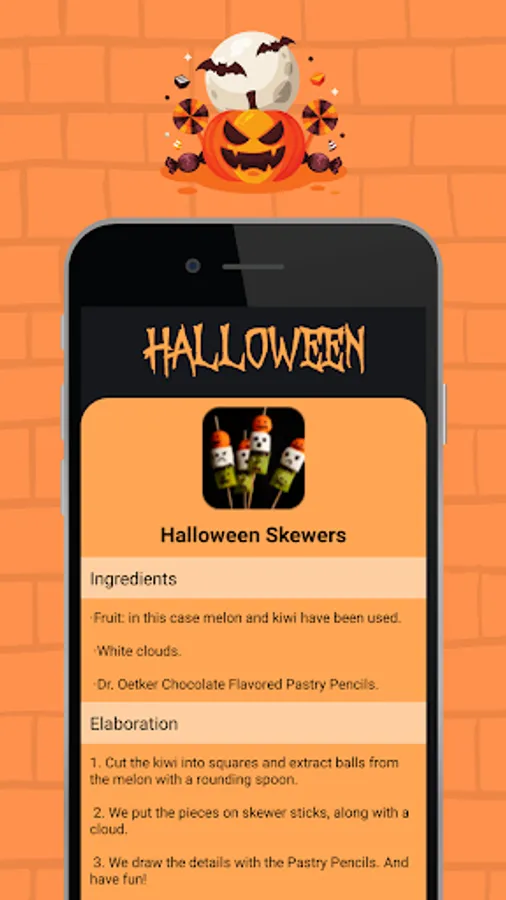 - Absolutely all the dessert recipes and dishes in this application have a touch of terrifying dessert to accompany this night and surprise all your guests with a good Halloween scare.