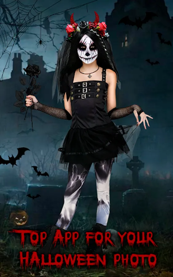 Take a Halloween spooky photo! Halloween costumes and halloween makeup for girls. Free Halloween photo editor for your halloween selfie. Halloween games offline