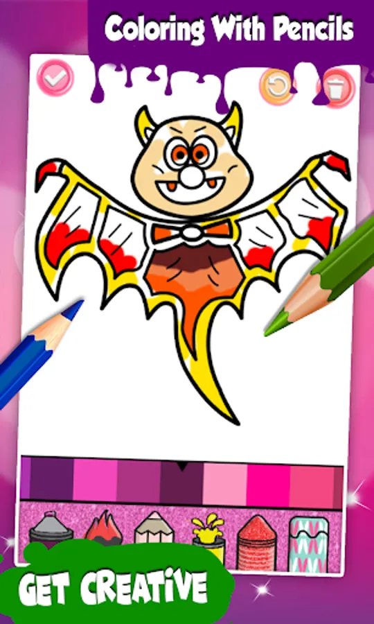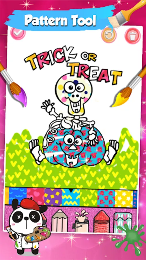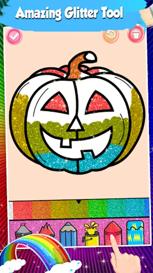 This entertaining Halloween game glitter allows you to create beautiful artworks in the same way as you would on a paper, book or magazine, using different options to paint like brushes, crayons, glitter tool, pattern tool or pencils and eraser.