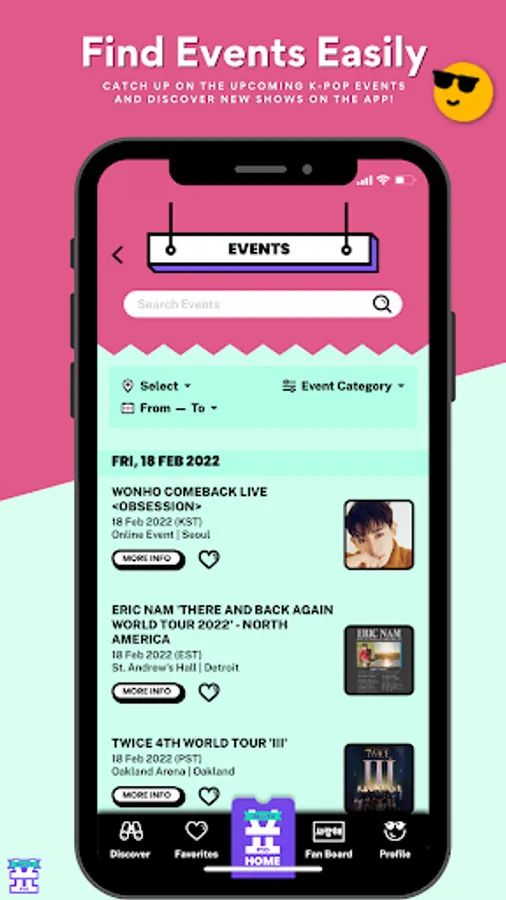 Favourite and bookmark any K-Pop event or artist and be notified on on all your favourites!