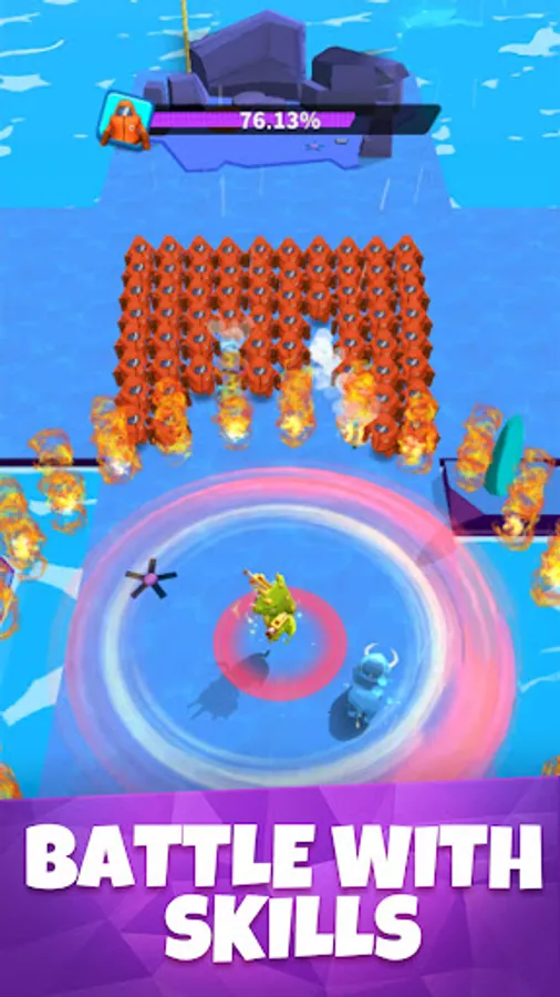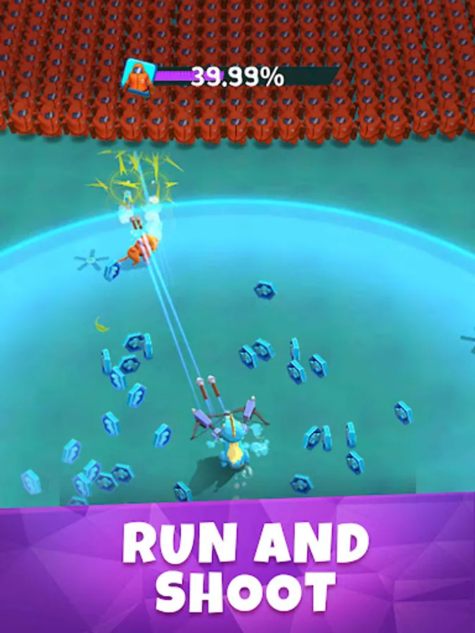 Drag and move, the dinosaur🦕 will be constantly runs forward. Once you close to enemies, the dino holding weapon will be auto shoot, until all the enemies has been cleared. At the end of level, what you only need to do is gathering coins and reaching the goal!