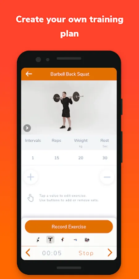 Crea tus propios entrenamientos, o recibe un plan de entrenamiento personalizado de un entrenador en su gimnasio, basado en sus objetivos de acondicionamiento físico.