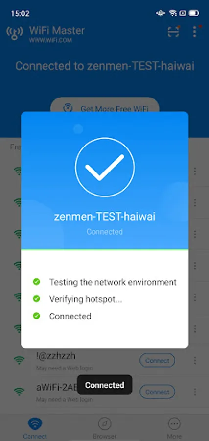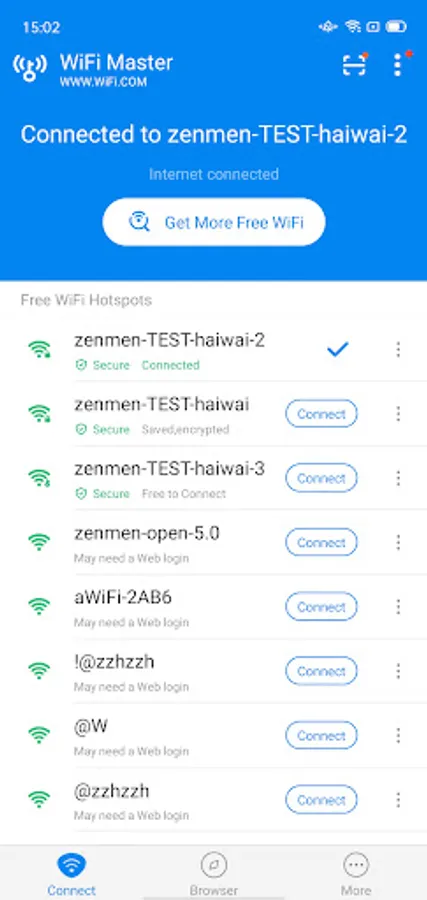 WiFiMaster is a tool that gives you access to open hotspots and WiFi near you. We have secure WiFi hotspots shared by our users around the world. You can find wifi nearby and connect to stable internet.