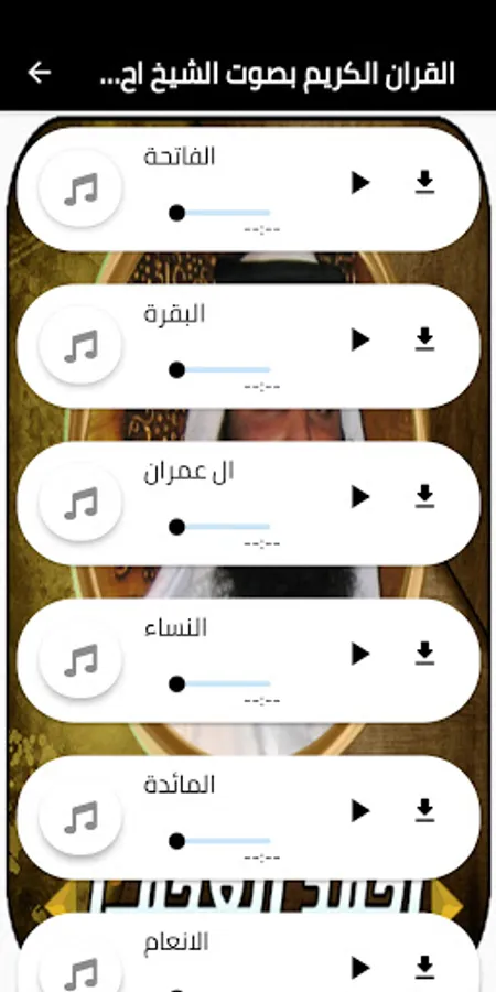 The application of the Holy Quran with the voice of Sheikh Ahmed Al-Ajami mp3 An application that contains all the surahs of the Holy Quran in the voice of Sheikh Ahmed Al-Ajami with high quality.