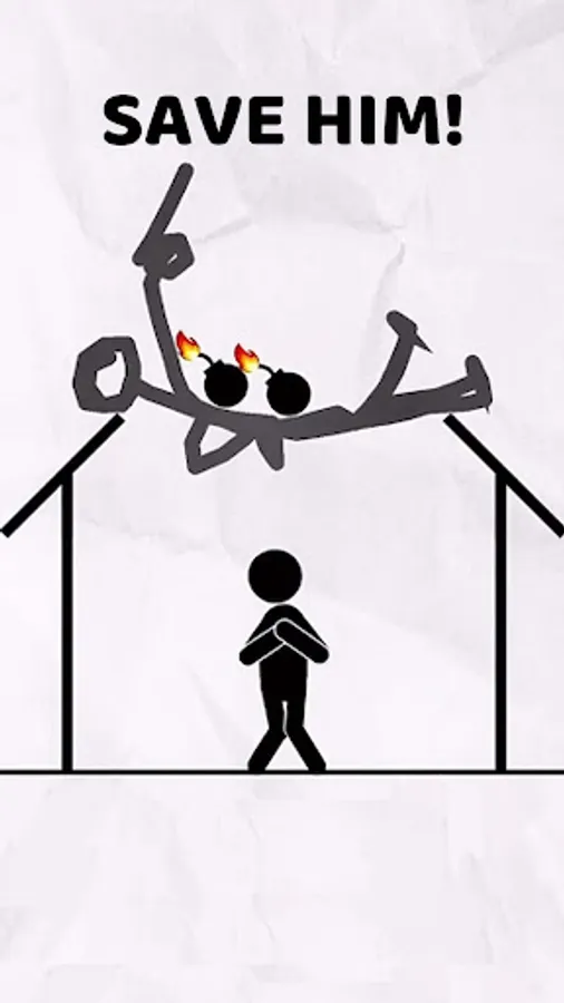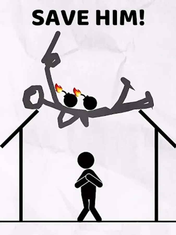 Each level contains a tricky solving-need puzzle, you need to use your brain IQ to stop the stickman from being danger by draw a tricky one line. How to draw? It is totally depend on you! You can use imagination to create whatever you want only if you could save the man to make him alive.