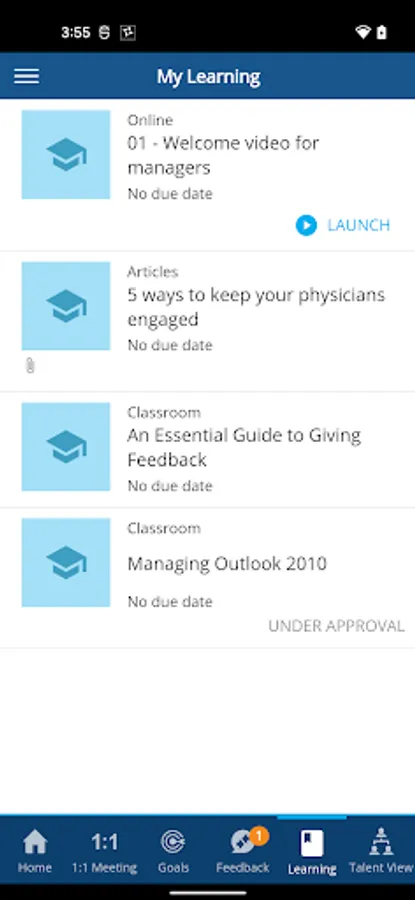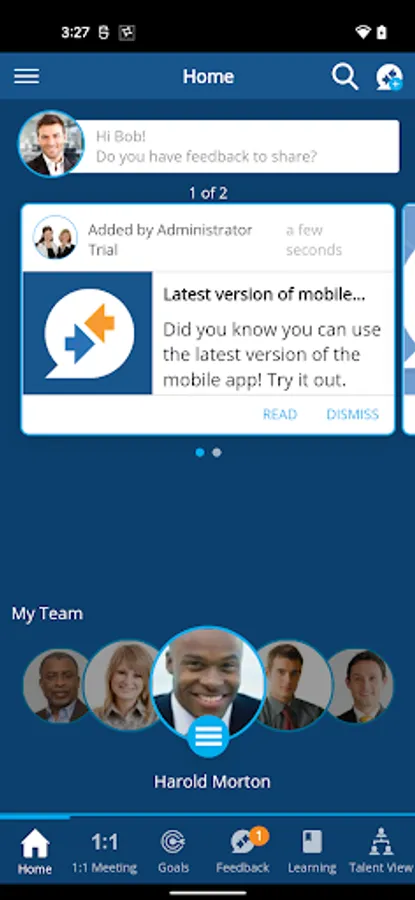 The Saba TalentSpace mobile app provides an extension of our Feedback, 1:1 Meeting, Learning and Talent View capabilities available in Saba TalentSpace. This free app gives end users an easy way to send and receive feedback, get tips and reminders on providing effective feedback, encourage and track 1:1 dialogue, access learning, work with goals, and connect with colleagues across the organization – all from a smartphone!