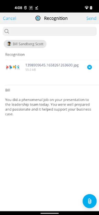 * Share in-the-moment feedback, recognition and coaching tips with colleagues in your team and across your organization. You can include photos and links with your feedback.