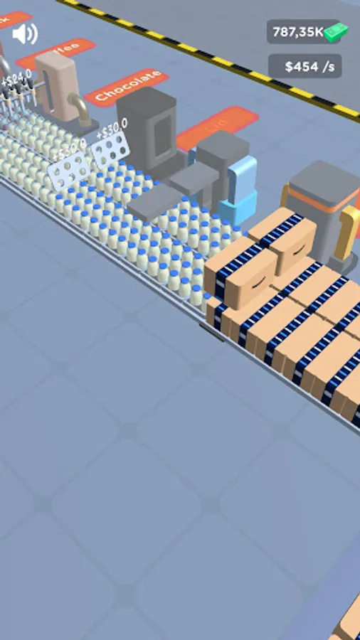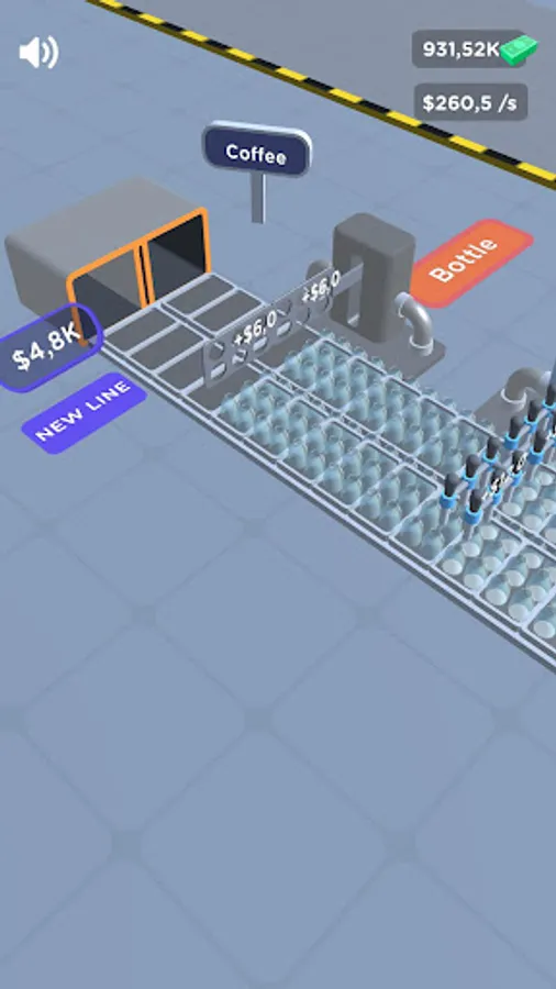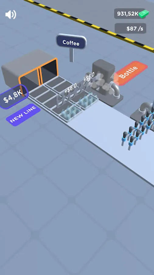 Fill and pack products into bottles. Submit products and earn money. Improve the machines with the coins you earn.