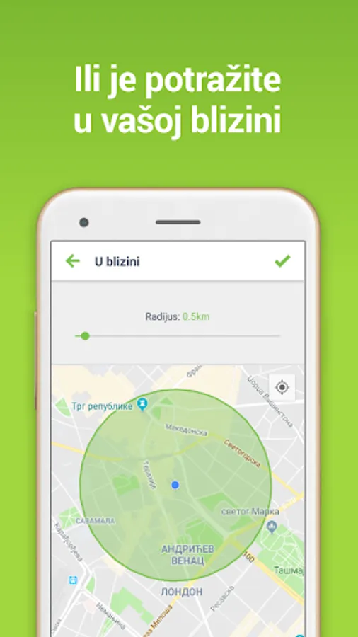 - "Nearby" option: See current real estate in your vicinity with the radius