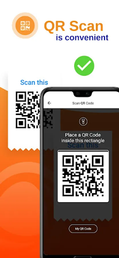 - Make Payments through QR code in paying the merchants.