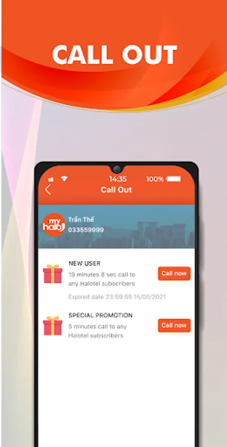 Call Out features it enebles you to call Halotel subscribers using the App even if they do not have MYHALO App installed or have smartphone or data.