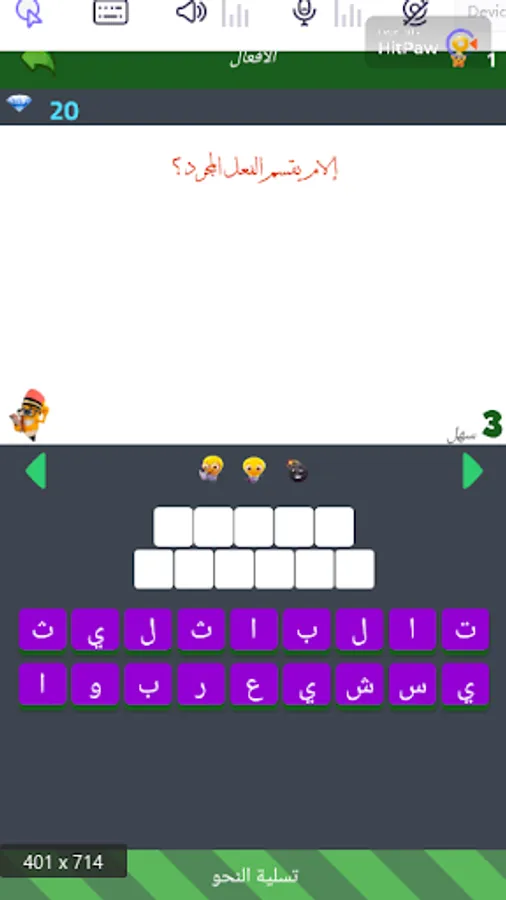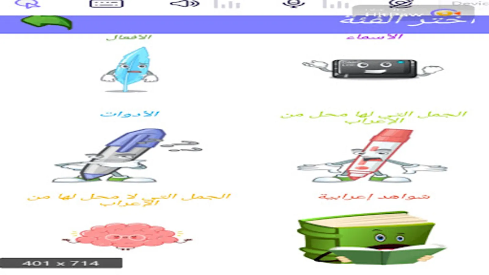 Grammar Entertainment is an educational application for Arabic grammar, in which categories have been developed for play, such as nouns, verbs, and tools