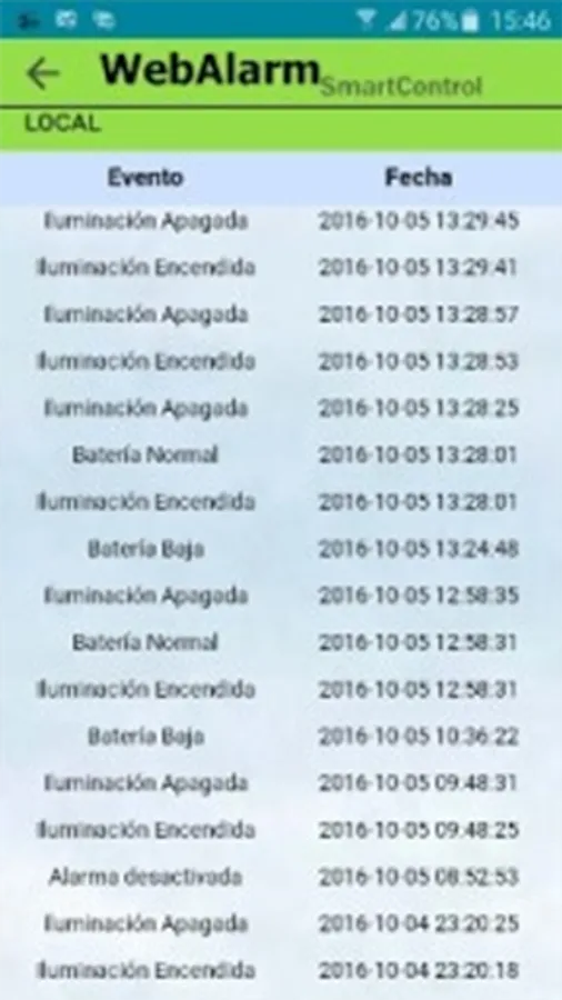 From the Smart Control WebAlarm the real-time user can activate / deactivate an alarm, check the battery status, access a list of recent alarm events
