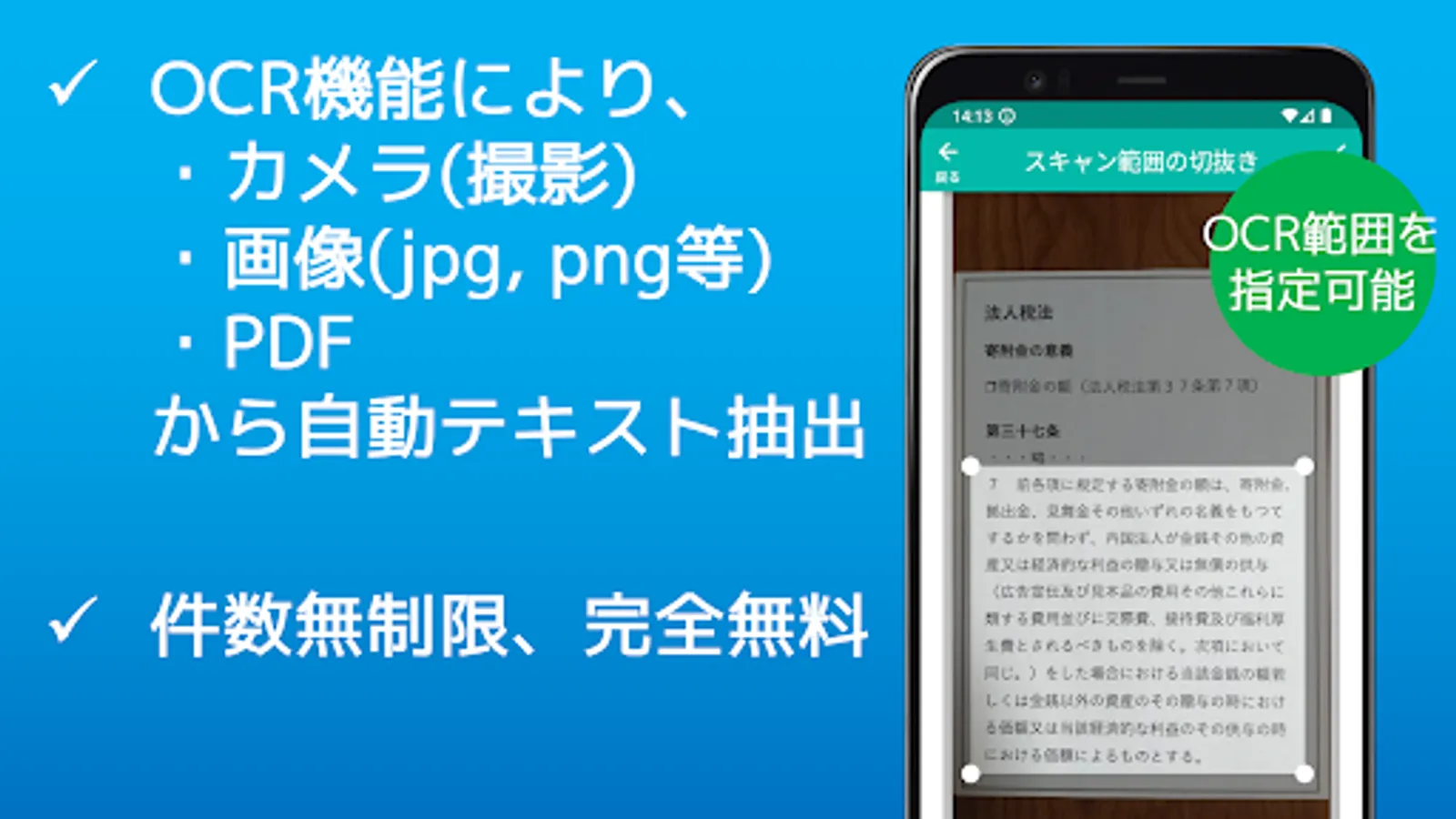 Text data is extracted by the OCR function when reading a photograph, an image, and PDF.