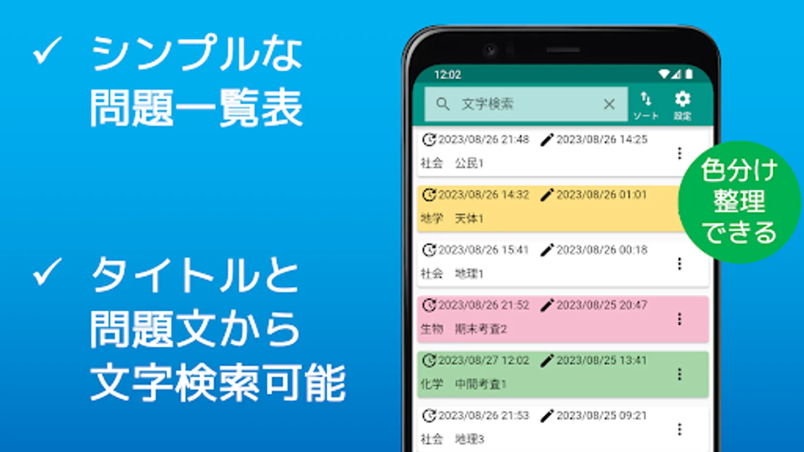 You can use it to memorize school tests and qualification exams by making use of your free time while traveling. It is convenient because you don't need to write and you can create memorization problems without soiling the materials.