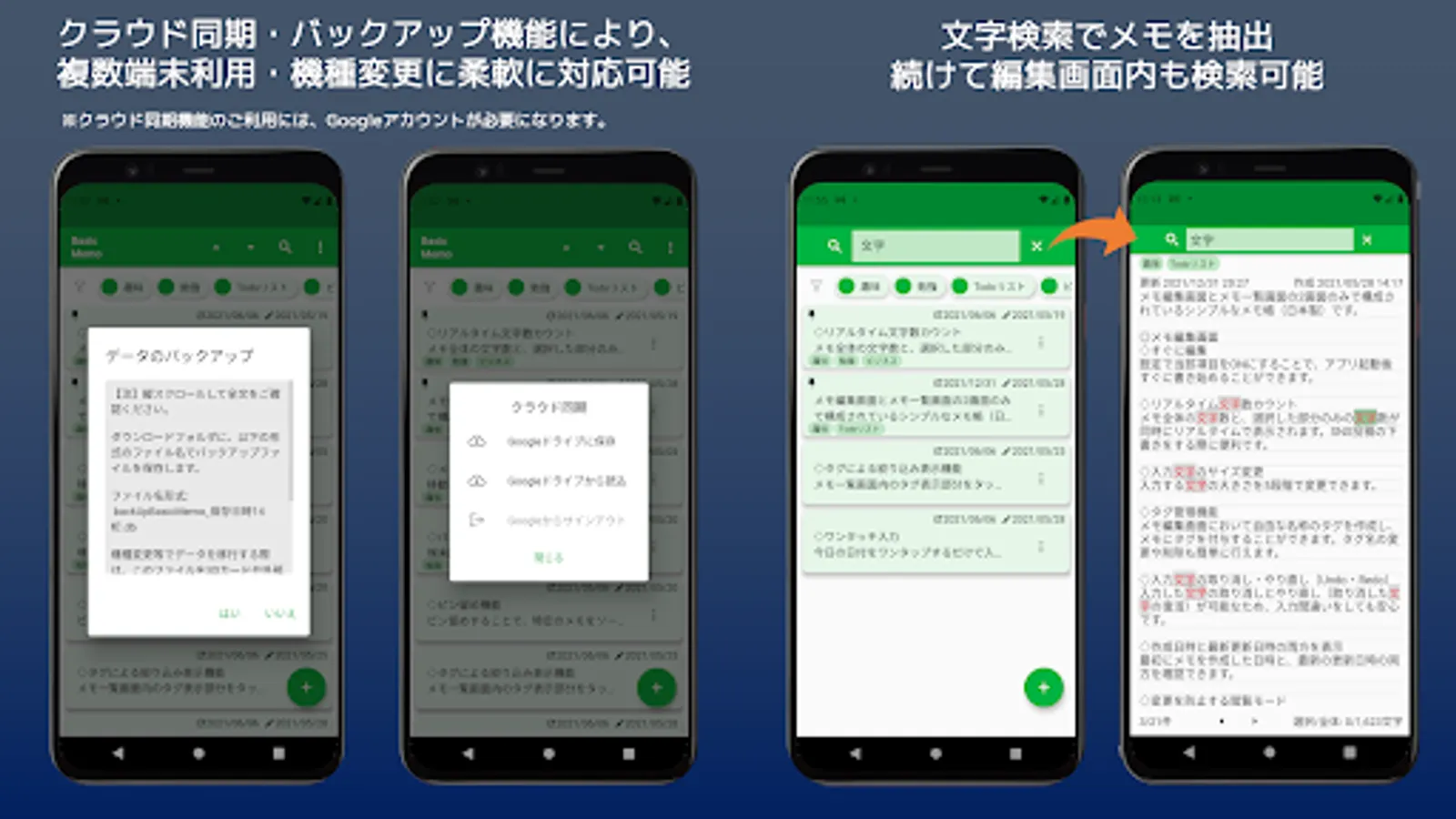 ・In order to keep the functions as simple as possible, we do not currently have a function for creating folders, color-coding memos, or sorting memos by sliding your finger. Doing).