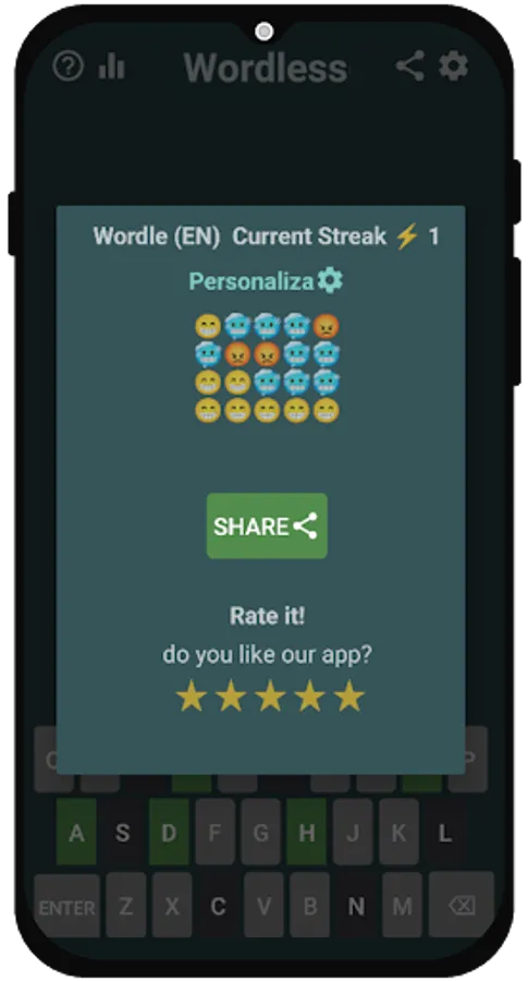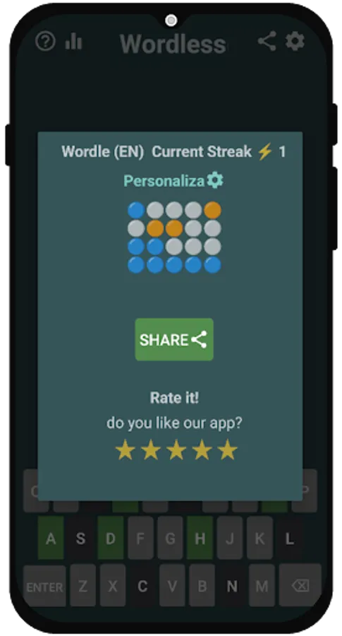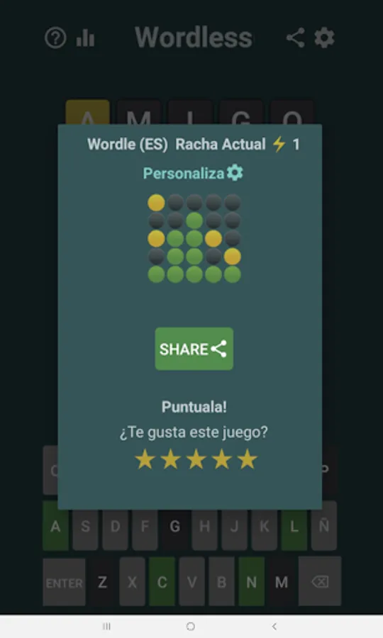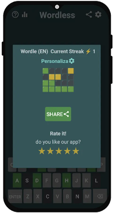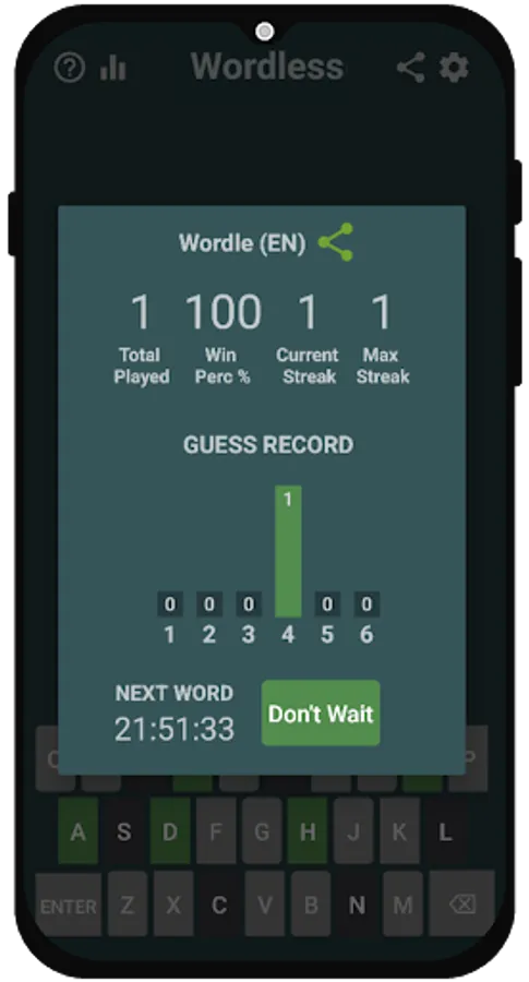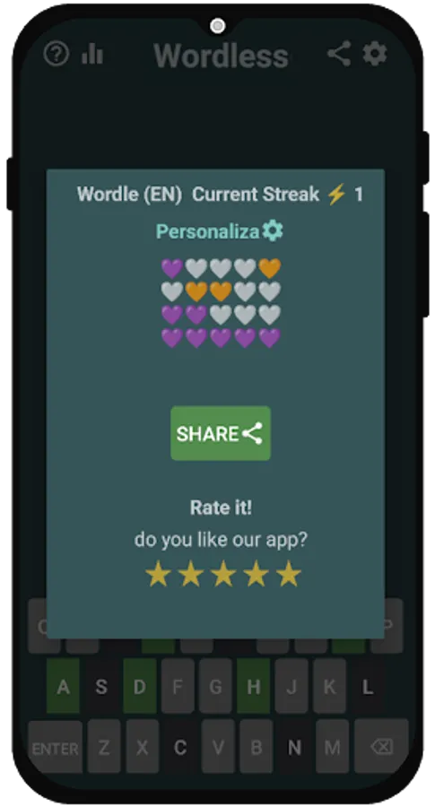 Try to get the highest number of consecutive words and share your streak record on social networks with Wordly share button, and get an beautiful image.