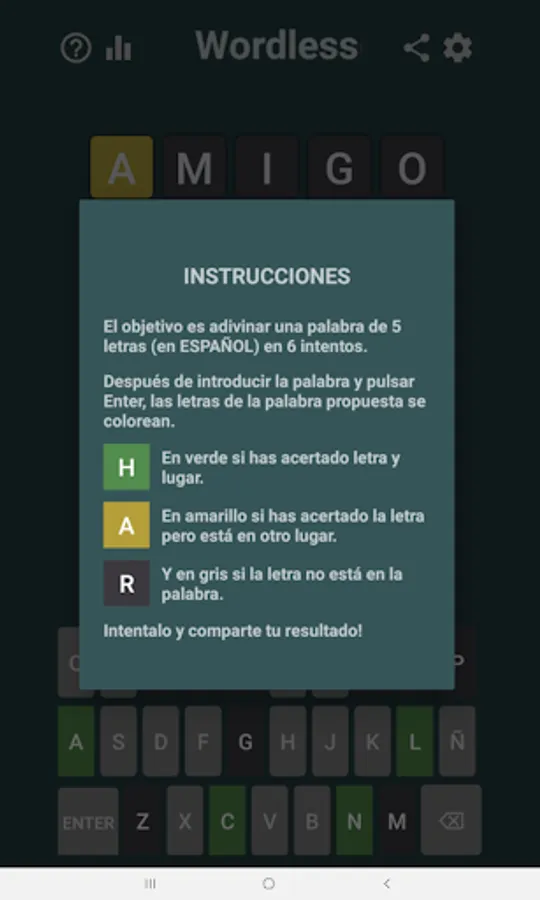 In addition, the keyboard of Wordly lights up with the letters that you have already used to help you. Of course, there are no clues that indicate if any letter is repeated.