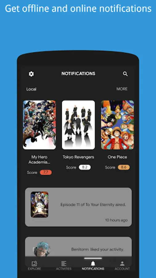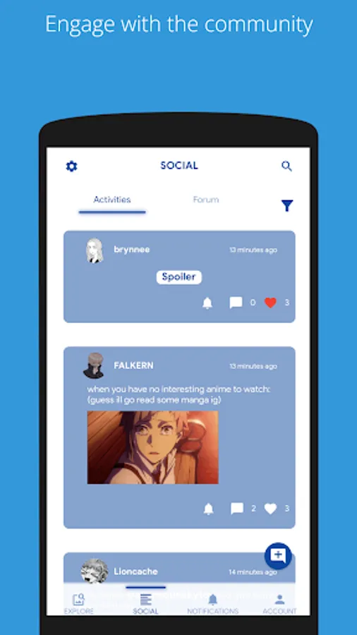 - Discover new anime and manga.