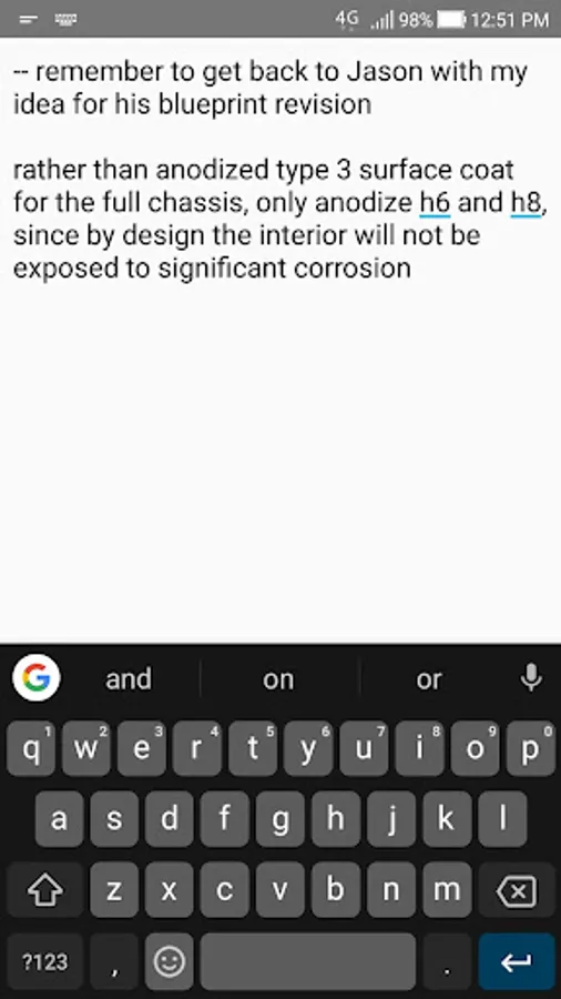 Jot has a single page of notes, which you arrive at instantly when the app is opened; no hoops to jump through. Besides allowing you to edit your note file to your heart's content and instantly auto-saving any changes, Jot has 3 simple features.
