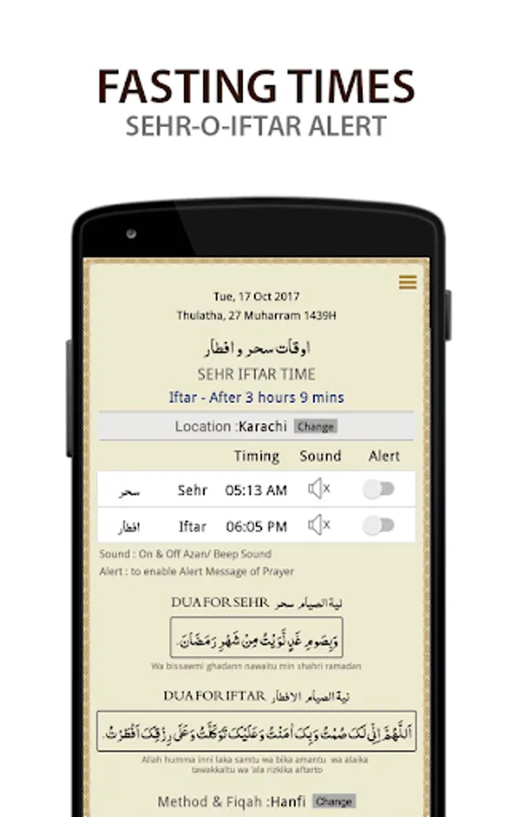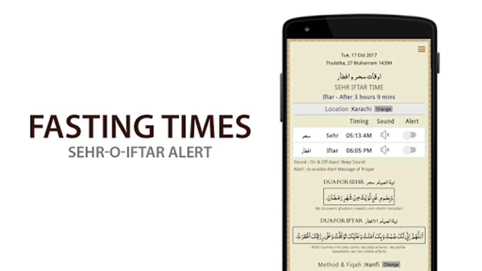 • Fasting Times (Sehr-o-Iftar Alert) for Ramadan as well as All Year