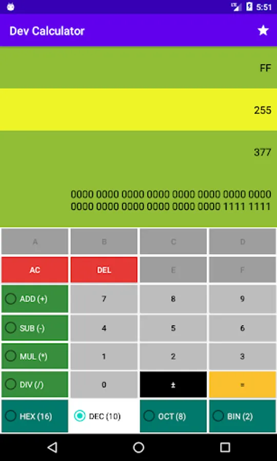 For any developers, students need a tool to calculate number in any bases as Dexadecimal, Octal, Decimal, Binary system. This app can convert and do operator same as addition, subtraction, multiplication, division.