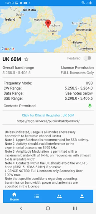 Links to local official regulatory organisations for additional frequency limitations, restrictions and power limits.