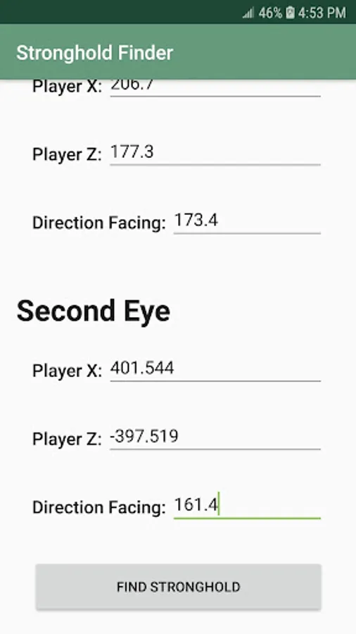 Stronghold Finder locates strongholds in your world with only two eyes of ender! Just throw your eyes of ender, record the position and direction of each one, and Stronghold Finder will calculate the exact location of your stronghold.