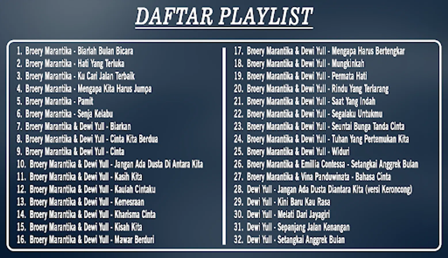 2. Top Hits Broery & Dewi Yull The most popular memories have a very contemporary and attractive display design and are easy to use so you won't feel bored when opening this Offline Memories Song Collection application.