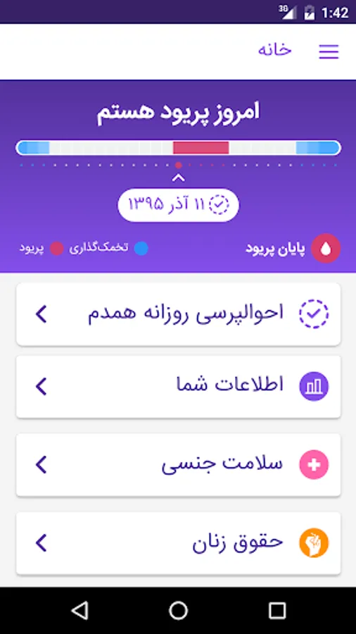 Companion of the first laboratory production "Ayrankvbatvr", applications for assistance in the field of health and rights of women married under the jurisdiction of the content of gender equality in NGO activists "Spectrum" Machvlnd founder, has been made. The first Persian-language companion app to the Jalali calendar is that women in the menstrual cycle and sexual health and fertility and also in the field of information available to users of our marriage and domestic violence.