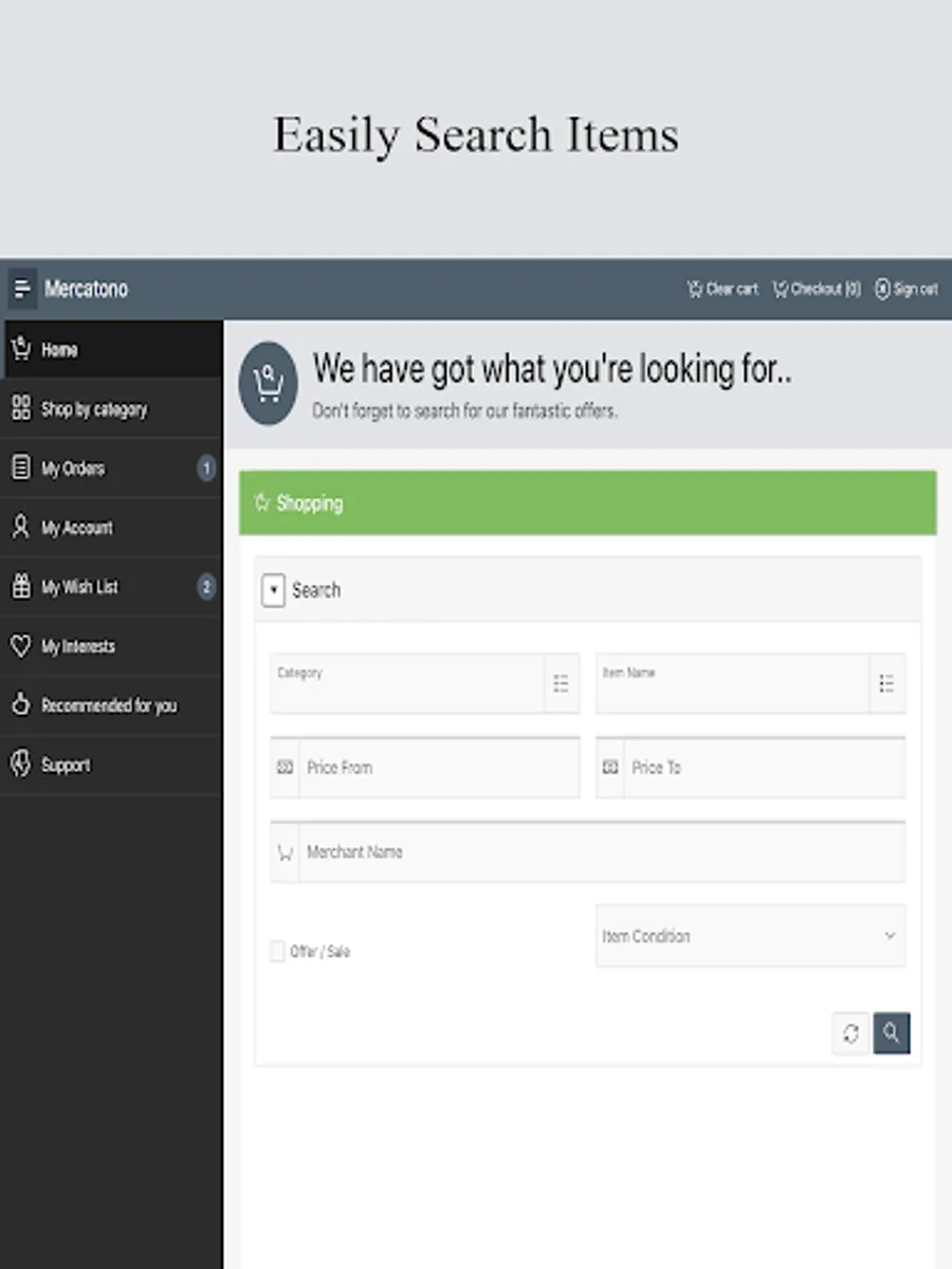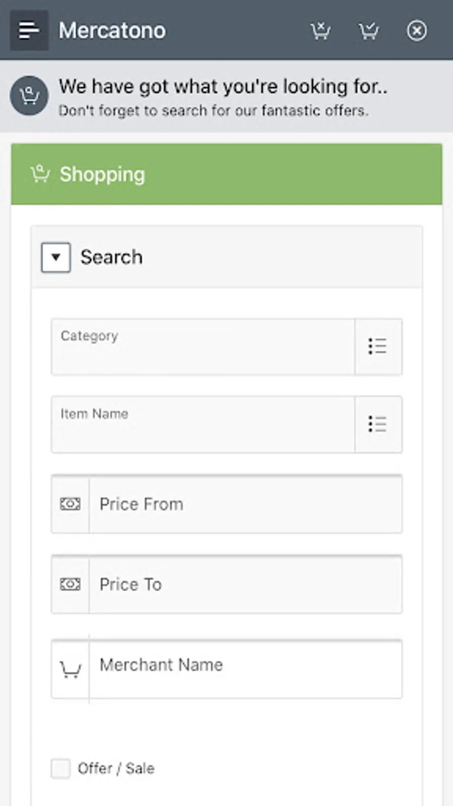 With Mercatono online shopping you can browse wide range of goods, products and services. it is smart, light and easy to use.