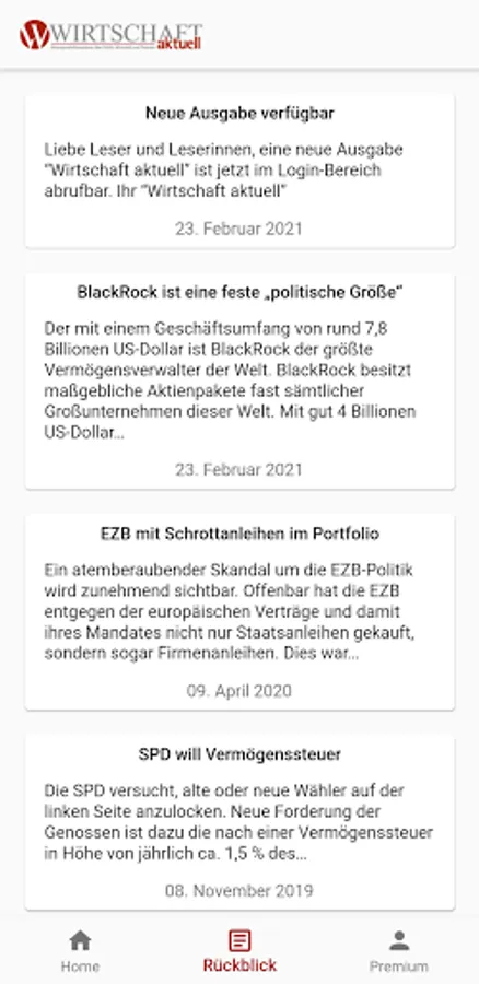 Wirtschaft aktuell is a free app with background information on politics, economics and finance, free news content, excerpts and a member's area. Hamerbrief is one of the most renowned information letters in German-speaking countries with a forecast reliability of over 95%, published by Dr. Eike Hamer from Valtier.