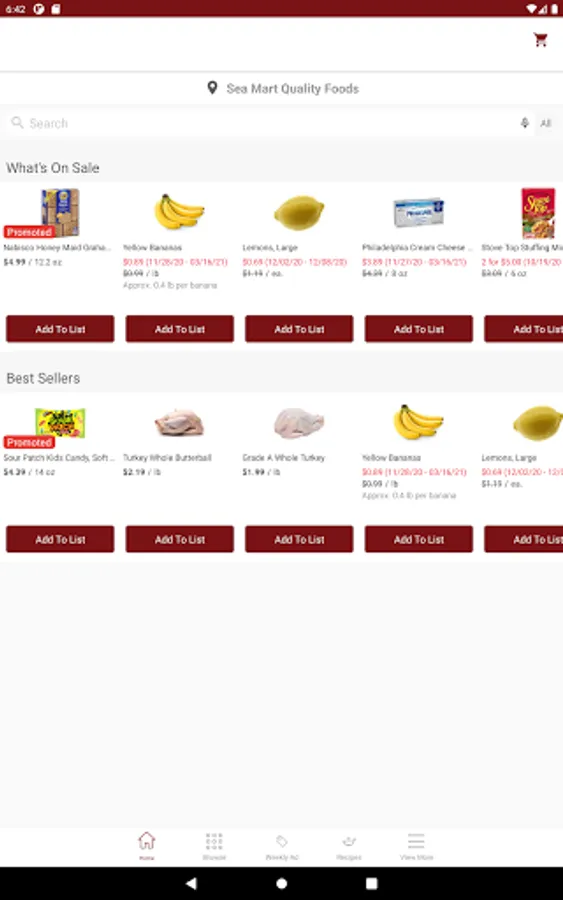 Order same-day groceries from Sea Mart Quality Foods and get the same prices available in-store, including all sales and special offers. Scan products in your pantry to build your lists, saving you time and making sure you get the same products, even when having the store shop your order.
